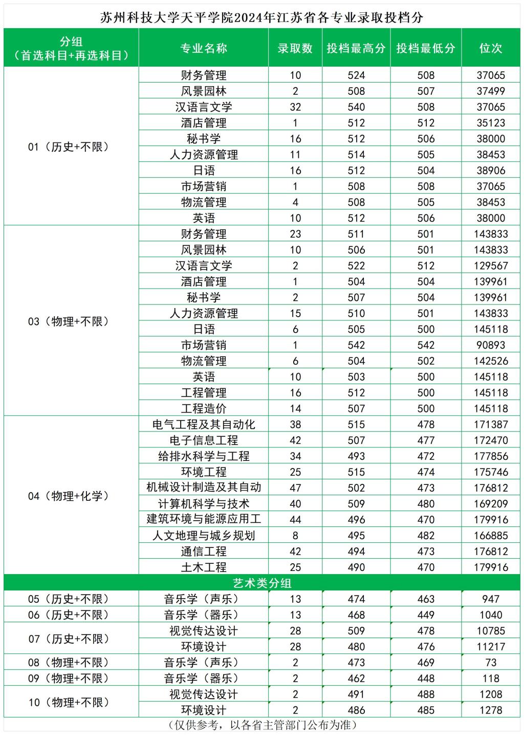 2024年江苏省各专业录取分数线及位次表